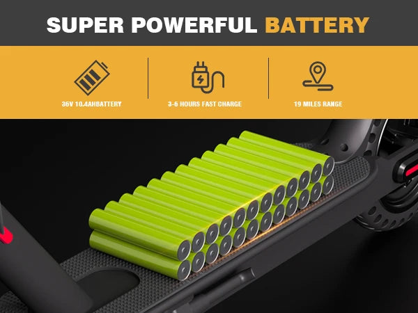- Long Range: Equipped with a 36V 10.4Ah battery, offering a range of 18-22 miles (30-35 km) per charge, ideal for daily commuting.