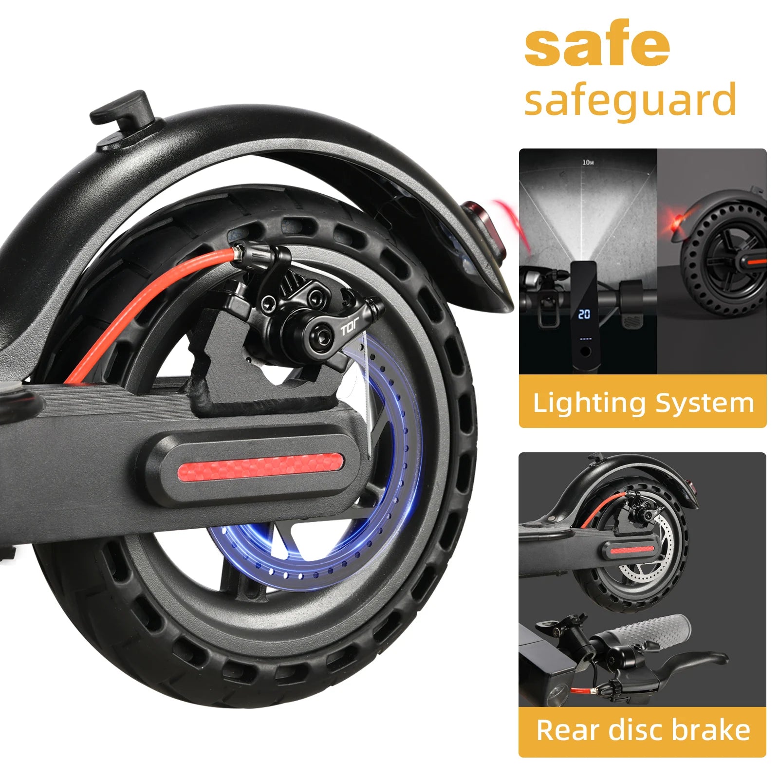- Explosion-Proof Tires: 8.5-inch tires provide a stable, comfortable ride while resisting punctures and flats.