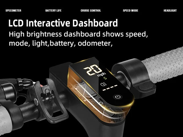 - Smart APP Control: Track speed, battery, mileage, lock the scooter, and manage settings through the smartphone app.