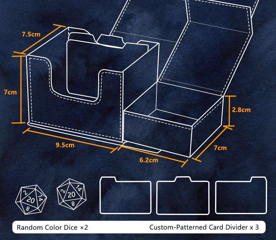 Whether you're a seasoned player or just starting out, this deck box is the perfect companion for your adventures in the world of trading card games. Elevate your game and impress your opponents with this stylish and functional deck box!