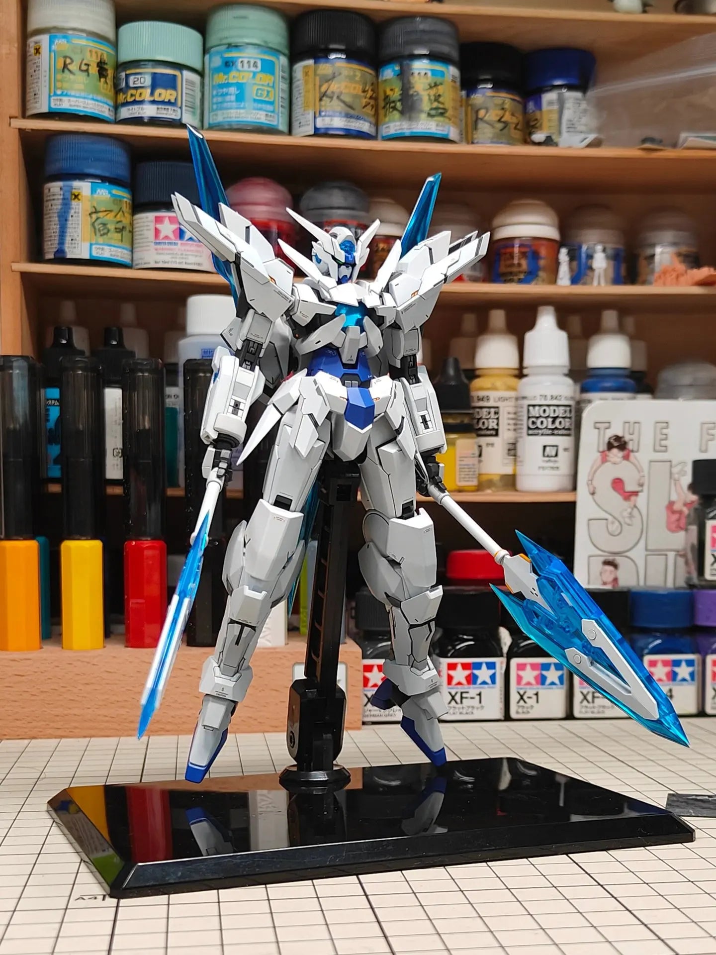 This figure features a futuristic design with striking blue and white accents, making it a standout piece in any collection.