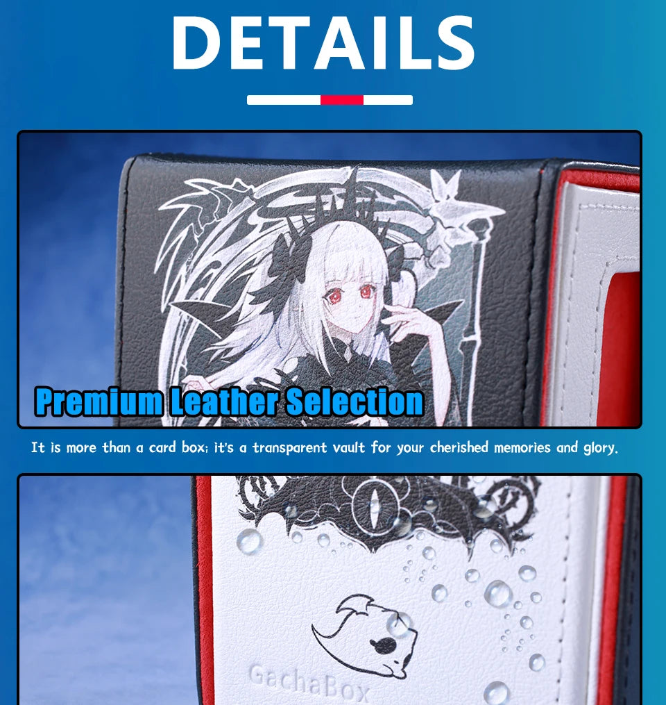 This deck box features a sleek design in magnetic PU leather with visually appealing details, making it a perfect blend of functionality and style for any anime or TCG enthusiast.