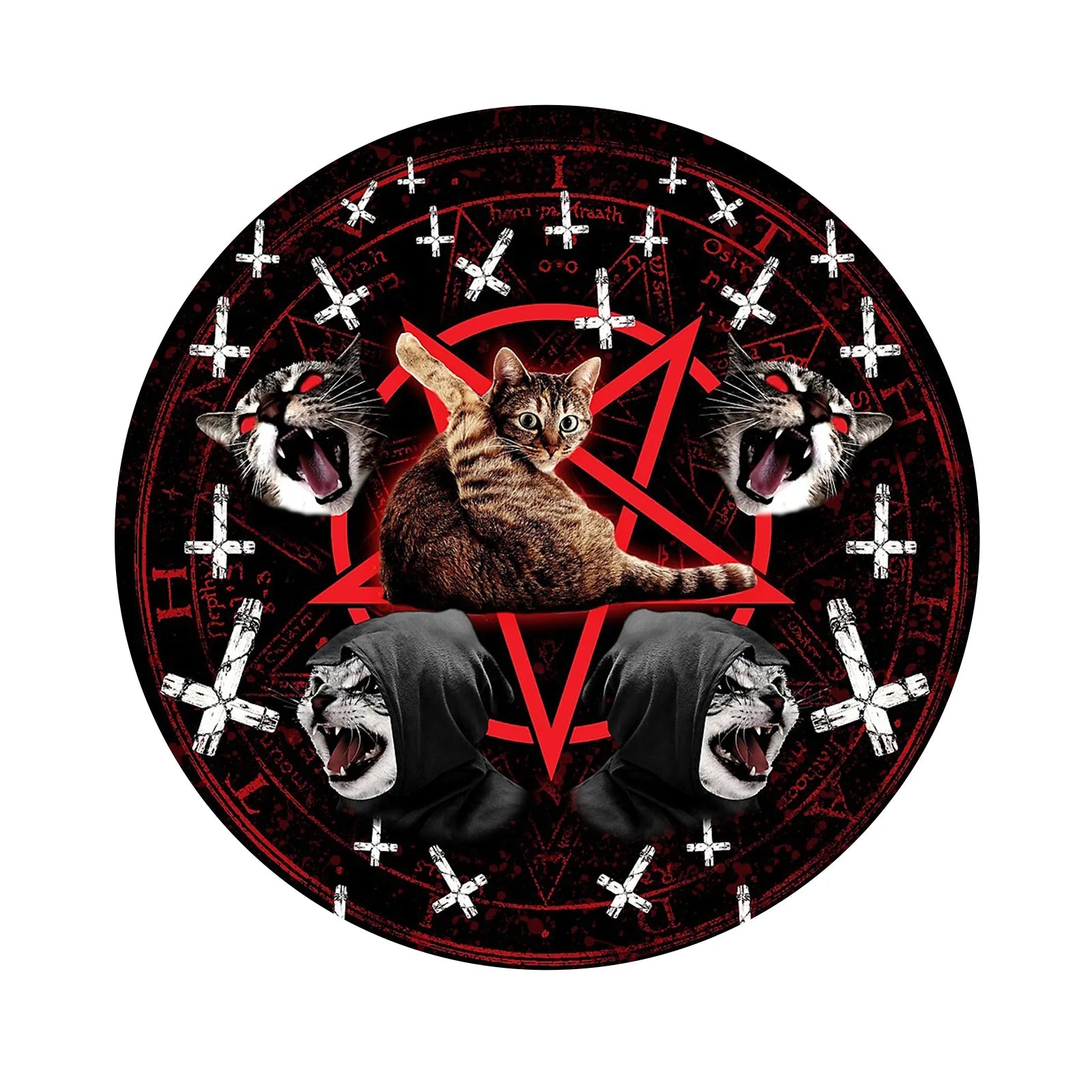 **** Mystical Cat Round Rug Red Pentagram Black Cat Gothic Cross Wolf Patterns