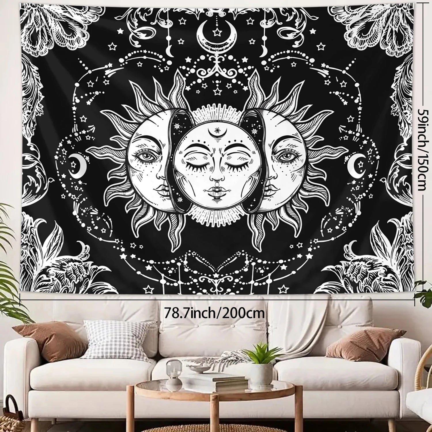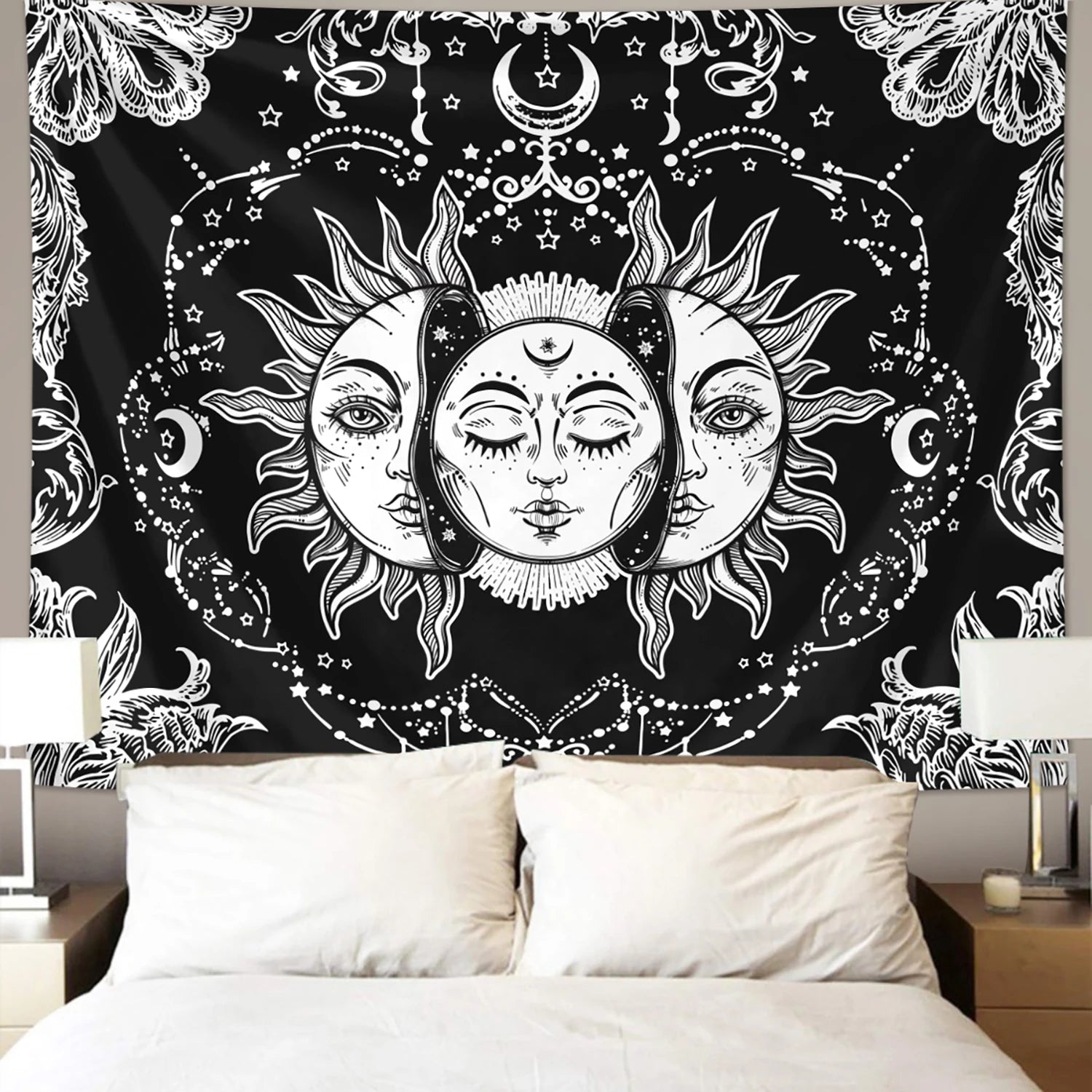 Sun Moon Tapestry Black White Tarot Card Wall Art Decor 1pc