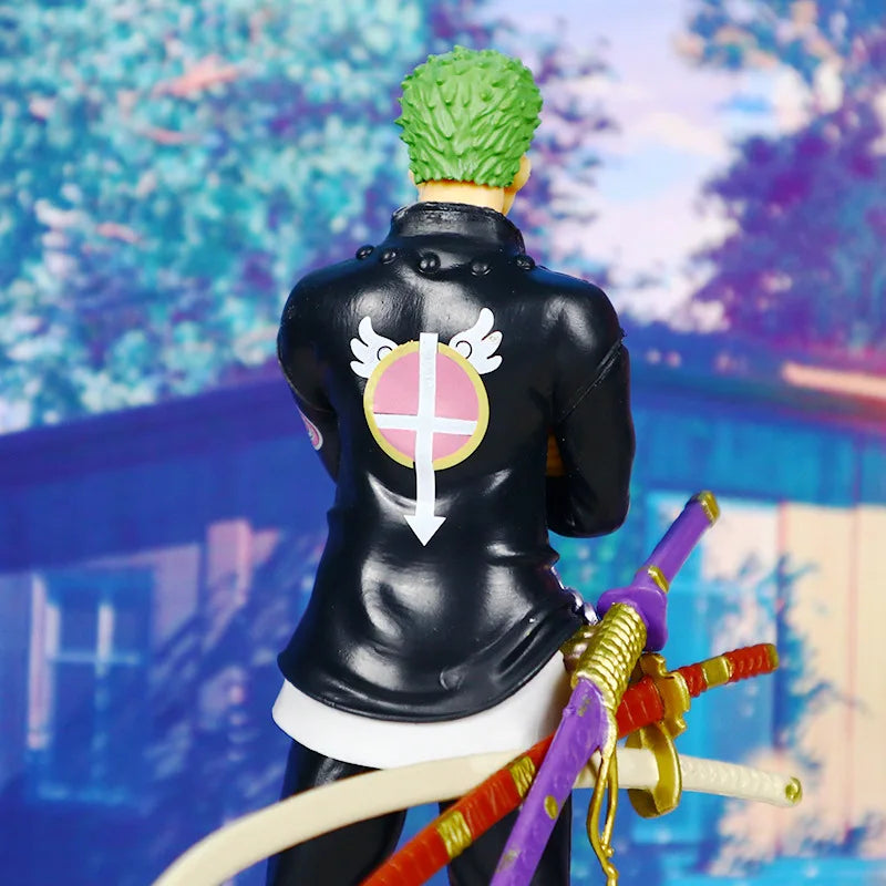 This high-detail PVC statue features Zoro in a slick black jacket with his three signature swords, perfectly posed and ready for display. A powerful addition to any One Piece collection.